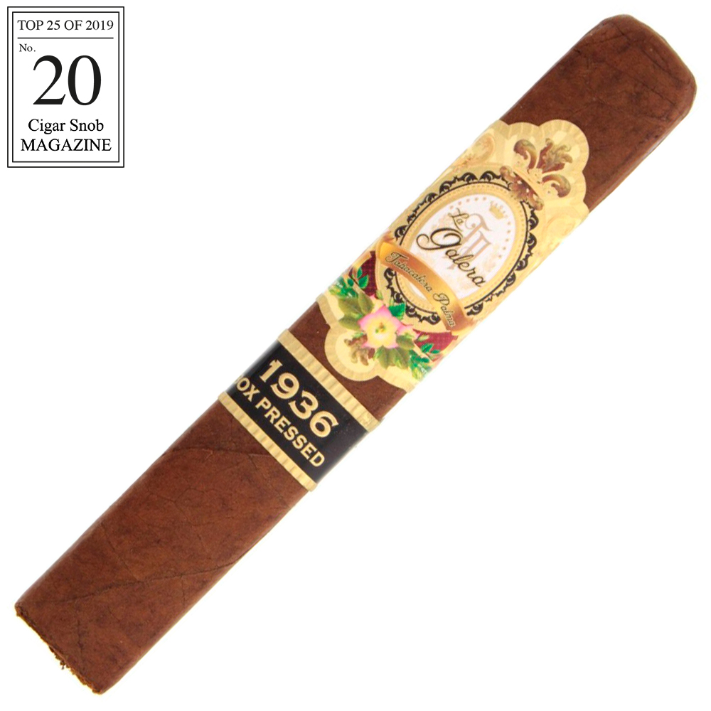 Ova cigara srednje snage nudi note papra, kave i nove kože. Njezin Ecuadorian Habano wrapper pokriva Dominican Criollo binder i Dominican Cubano i Criollo fillere. La Galera 1936 Box Pressed poznata je po svojoj složenosti i glatkoći.